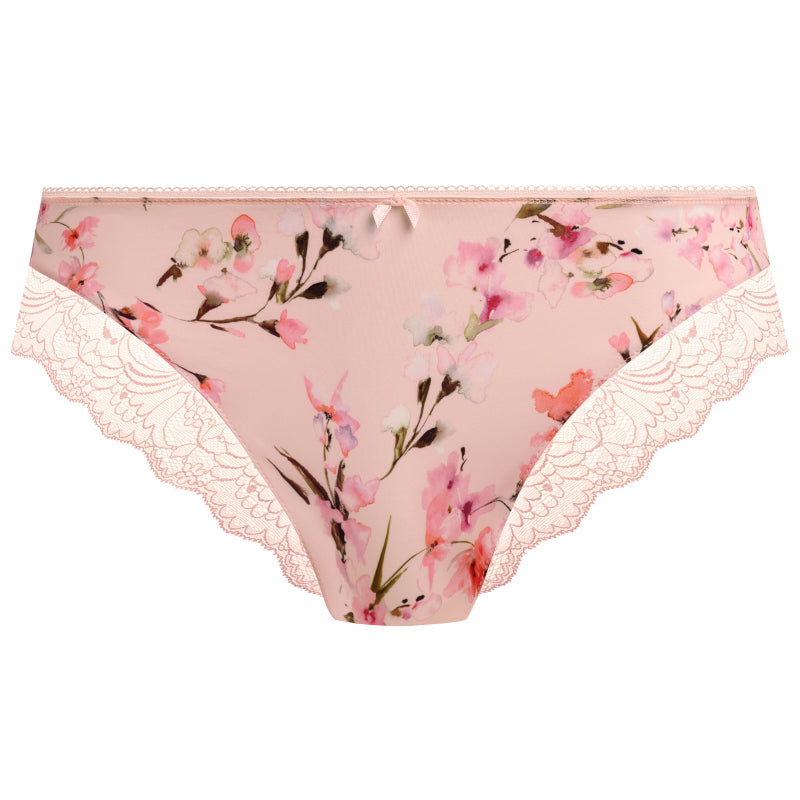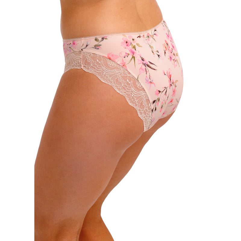 - Stretch lace adorns front and back leg