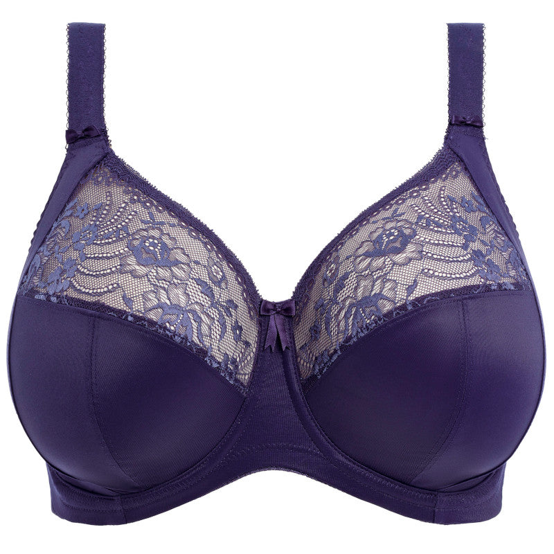 The Elomi Morgan midnight blue stretch banded underwired bra is a beloved essential for fuller figures that combines spellbinding style with unparalleled support. Featuring a three-section cup design with side support panels for exceptional forward projection, lift, and a beautifully rounded, natural shape. The powerful stretch lace in the top cup adapts effortlessly to your curves, offering a soft, flattering fit with an elasticated neck edge for all-day ease and comfort. It's the perfect blend of everyday reliability and feminine elegance.