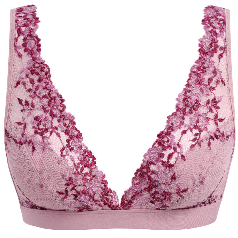 Embrace effortless comfort and feminine allure with the Wacoal Embrace Lace soft cup bra in keepsake lilac multi. A wire-free treasure from the iconic Embrace Lace collection. Delicate all-over two-tone floral stretch lace cups, partially lined for light support and modesty, drape beautifully for a natural shape, while wide decorative camisole straps feature a convenient J-hook for versatile racerback styling. A supportive underband ensures gentle anchorage without restriction, making this lightweight bralette ideal for lounging, layering, or everyday wear where pretty meets practical in sophisticated sensuality.