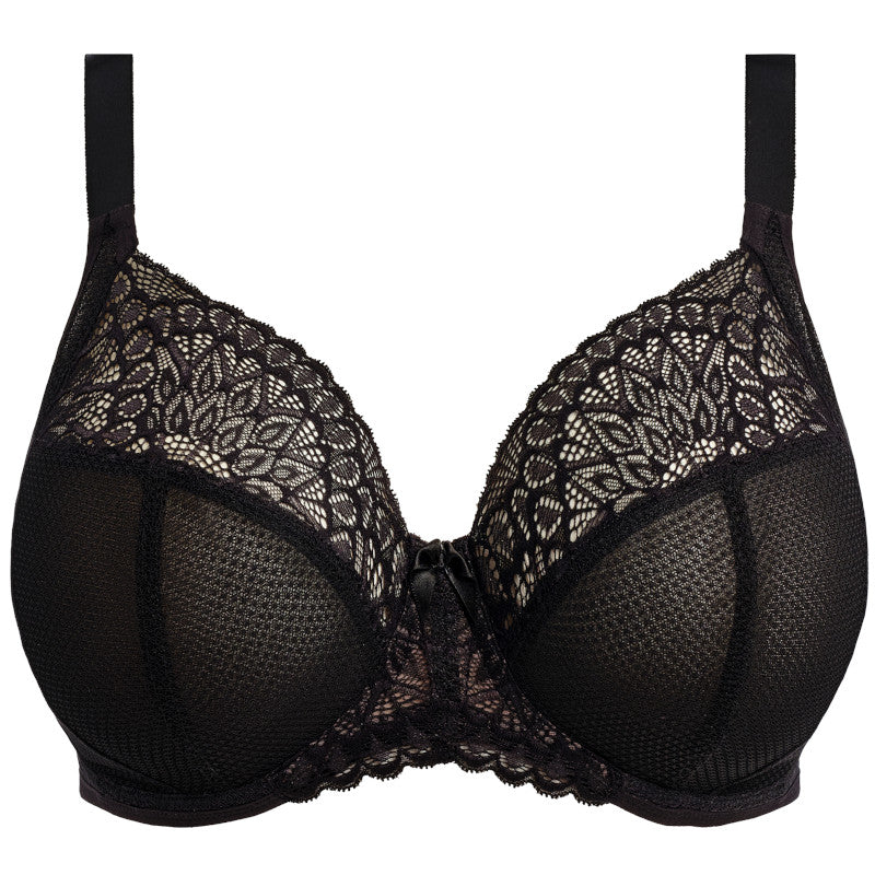 - Top cup cut from a powerful stretch lace for a rounded shape and ease of fit