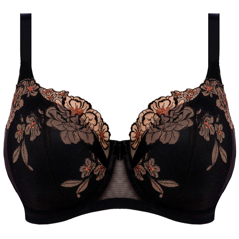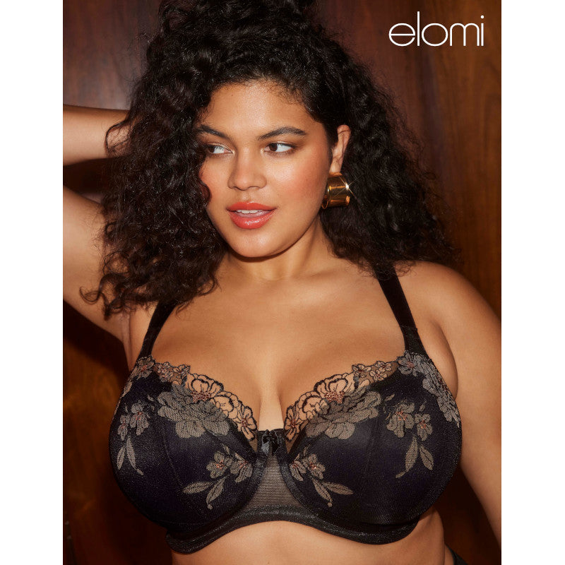 Whether you're dominating the boardroom or lighting up the dance floor, the Elomi Teagan padded half cup bra in black/almond is your ultimate blend of powerful support and feminine allure. Inspired by the beloved Brianna collection, this style features firmer foam for enhanced lift, keeping you confidently elevated from dawn to dusk. The rich black base contrasts beautifully with warm almond accents, while precision-printed embroidered cups shimmer subtly with soft metallic yarn. Finished with a dainty bow at the center front, it's the perfect mix of charm and luxury for fuller figures.